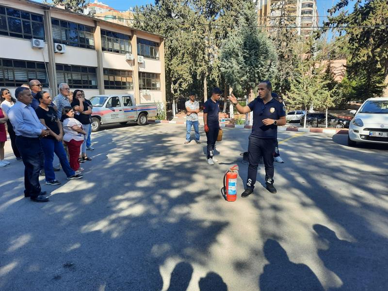 Adana Büyükşehir Belediyesi İtfaiye Daire Başkanlığı ekipleri tarafından, Kurumumuzda bulunan bütün personellere teorik ve uygulamalı yangın tatbikatı eğitimi verilmiştir.