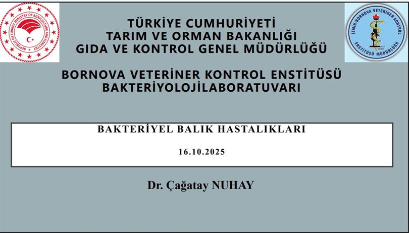 Enstitü Müdürlüğümüz 2025 yılı Hizmetiçi Eğitim Programında yer alan "Balıkların Bakteriyel Hastalıkları" Konulu eğitimimiz, 16.10.2025 tarihinde çevirimiçi olarak düzenlenmiştir.