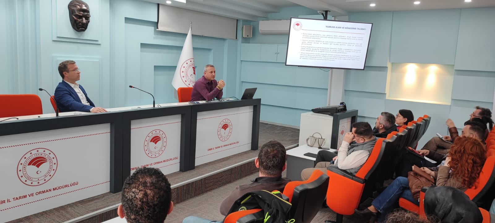 Bakanlığımız 2026 Hizmetiçi Eğitim Programı kapsamında, 24 Mart 2026 tarihinde İzmir İl Tarım ve Orman Müdürlüğü'nde saha veteriner hekimlerine yönelik, "Numune Alma ve Gönderme" eğitimi Enstitü Müdürlüğümüz uzmanları tarafından verilmiştir. Saha ve Enstitü Müdürlüğü arasındaki koordinasyonu artırmaya yönelik karşılıklı bilgi alışverişinde bulunulmuştur.
