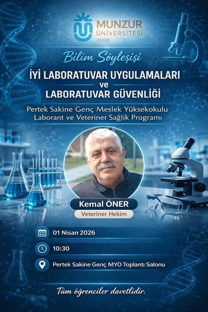 Tunceli Munzur Üniversitesi Pertek Sakine Genç Meslek Yüksekokulu’nun daveti üzerine, Enstitümüz personellerinden Veteriner Hekim Kemal ÖNER, "Laborant ve Veteriner Sağlık" programı öğrencileriyle bir araya geldi.