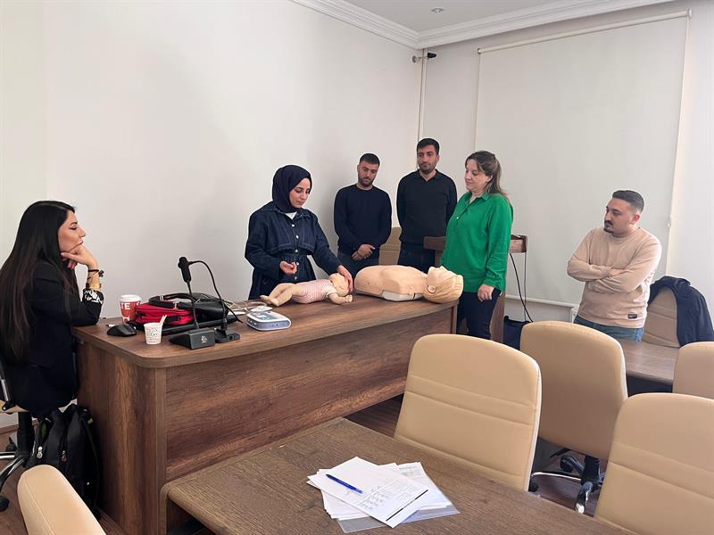 Eğitim kapsamında, günlük hayatta veya çalışma ortamında karşılaşılabilecek kaza, yaralanma ve ani rahatsızlıklarda yapılacak profesyonel müdahaleler ele alındı. Kızılay eğitmenleri eşliğinde gerçekleştirilen derslerde;